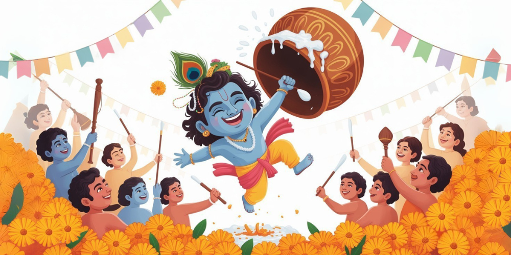 Krishna Janmashtami marks the birth of Lord Krishna and is rich in visuals and tradition. From tales of Krishna’s childhood to flute and peacock feather motifs, the imagery is powerful for storytelling.