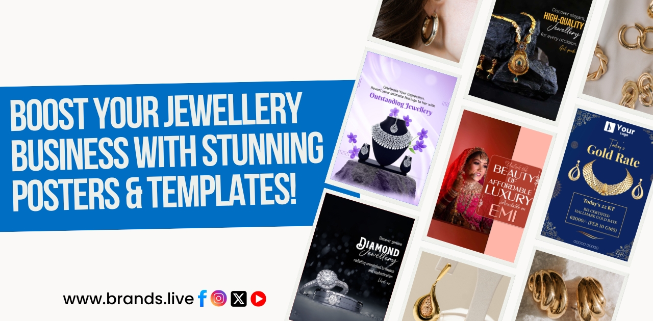 Gold, Diamond, and Silver Jewellery Marketing: Through its customized templates Brands.live provides solutions for marketing businesses that operate with gold, diamond, platinum and silver jewellery products.