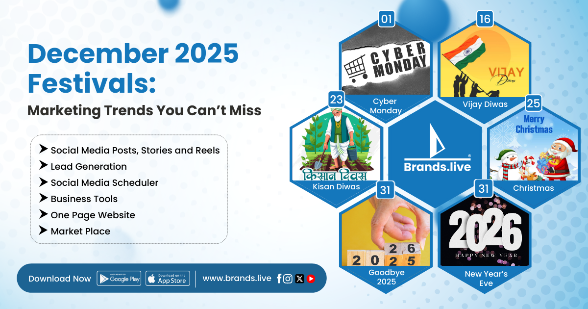 👉 Ready to Design Your December Campaign? You don’t need a graphic design degree to win this month. With Brands.live Festival Poster Maker, you can create professional Christmas Greetings, New Year Offer Posts, and Vijay Diwas Tributes in seconds.