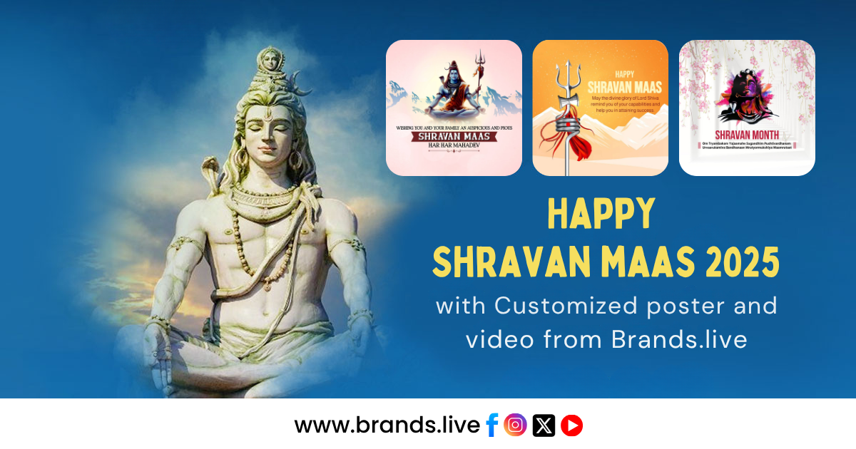 Brands.live offers customizable templates, posts and scheduling features to create and share content related to the month of Shravan, such as prayers, devotional messages and festive greetings.