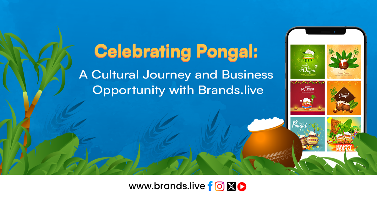 In the dynamic world of business, the upcoming Pongal festival presentsa  unique opportunity for small businesses to forge a deeper connection with their audience. As we delve into the realm of crafting a visually appealing and culturally resonant Pongal-inspired marketing strategy to generate more revenue, Brands.live stands out as the perfect companion for entrepreneurs. This app provides self-reliant tools, making it easier for businesses to create stunning Pongal posts, banners, stories, and more. In this blog, we’ll explore the visual and cultural elements associated with Pongal while incorporating key keywords like “Pongal Poster,” “Pongal flyer,” and others.