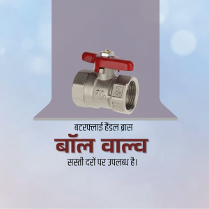 Description: An advertising image showcasing a 3-way ball valve, highlighting its use in managing piping systems efficiently. The image features a metallic valve with a blue handle against a gradient green and teal background.