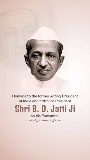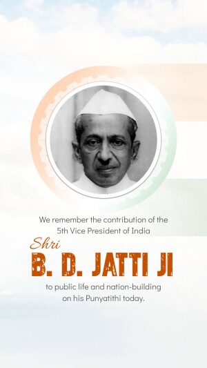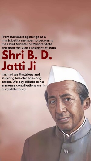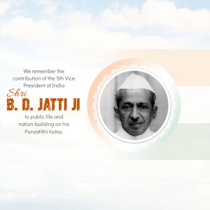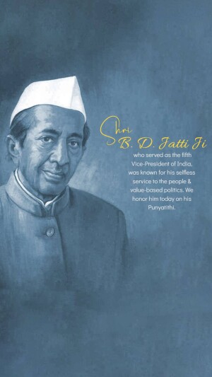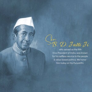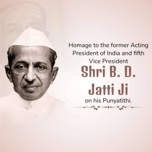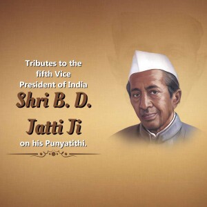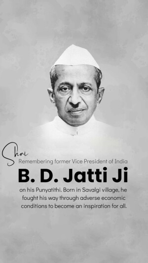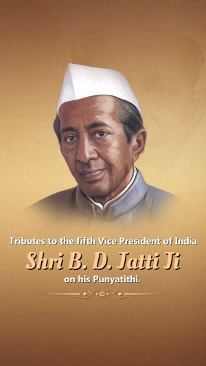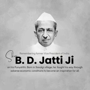 Description: A commemorative image featuring a portrait of B.D. Jatti, a former Vice President of India, framed in an ornate oval. The image includes text in Hindi honoring him.