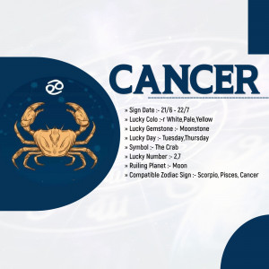 Description: An infographic detailing information about the Capricorn zodiac sign, including dates, lucky colors, days, symbols, numbers, ruling planet, and compatible signs.