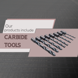Description: An image showcasing a collection of carbide drill bits, arranged neatly with a promotional banner highlighting 'Carbide Tools'.