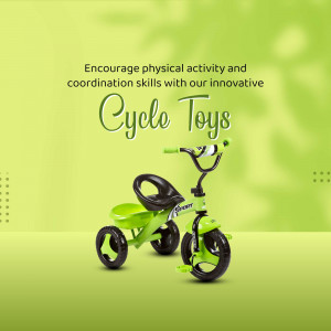 Description: A vibrant illustration depicting a collection of children's toys overflowing from a cardboard box, set against a pink background. The image evokes feelings of playfulness and the joy of childhood.