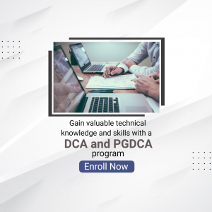 Description: An advertisement for computer typing classes, featuring a person typing on a keyboard with icons of a lightbulb and magnifying glass. The text is in Hindi, promoting mastery in typing and encouraging immediate enrollment.