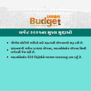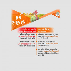 Description: A graphic comparing the Indian National Congress and Bharatiya Janata Party, with their logos and text highlighting financial figures and claims in Gujarati.