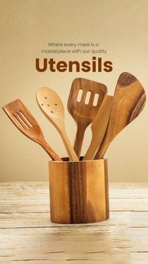 Description: An advertisement showcasing a high-quality cookware set with pots, pans, and knives, ideal for modern kitchens.