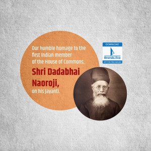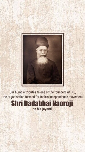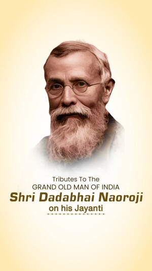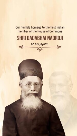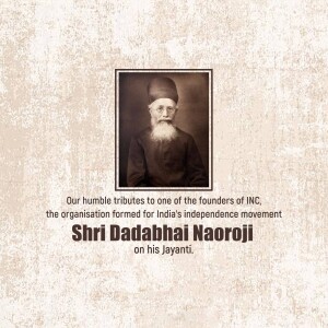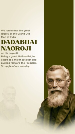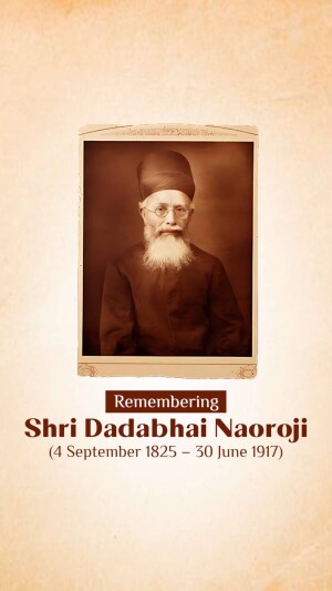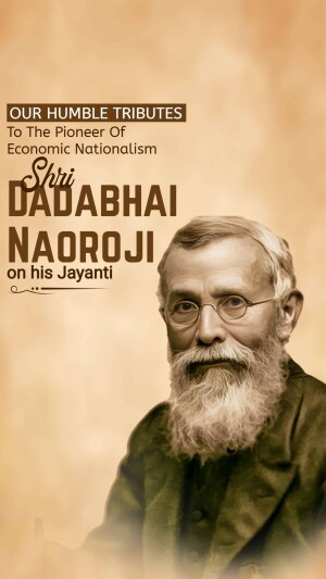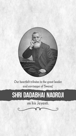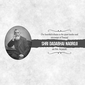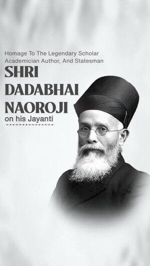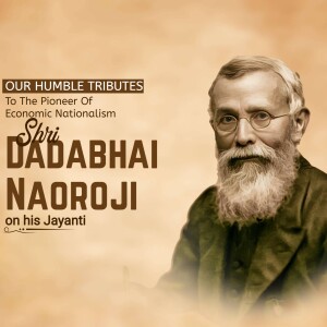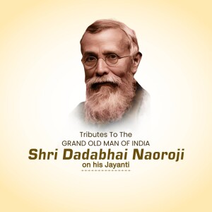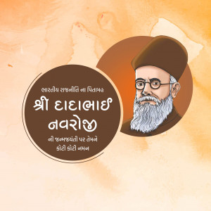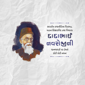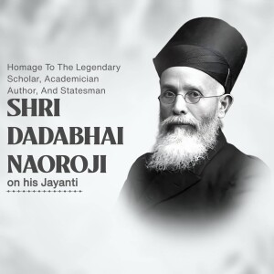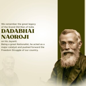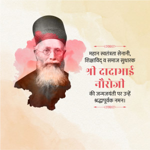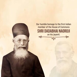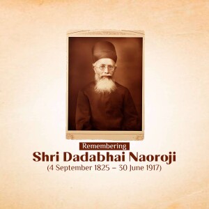 Description: A digital illustration of Dadabhai Naoroji, a prominent figure in the Indian independence movement. The image includes his name in Gujarati script and his birth and death dates.