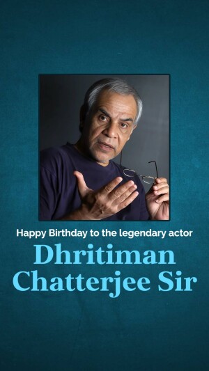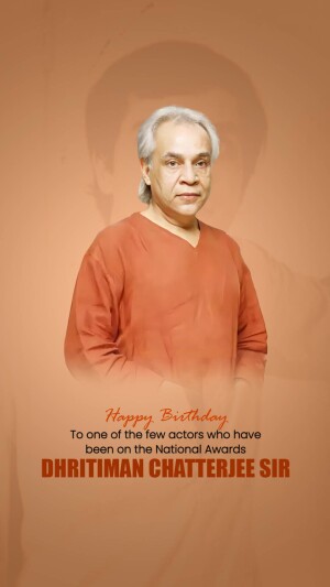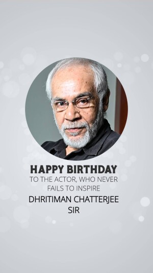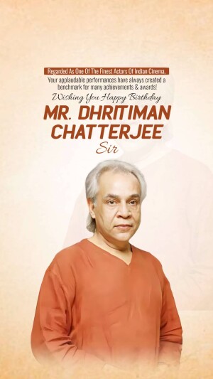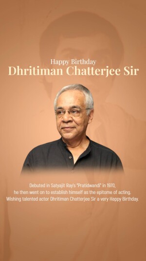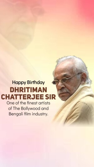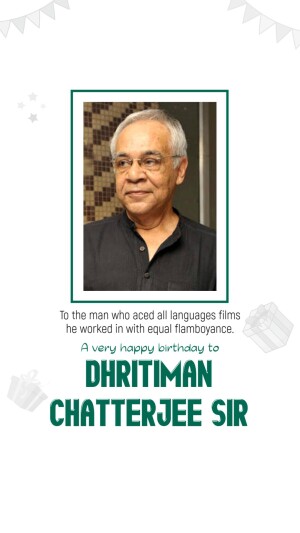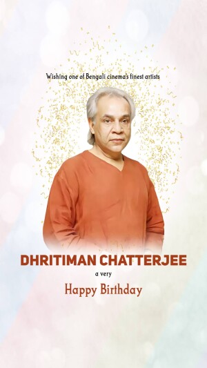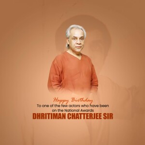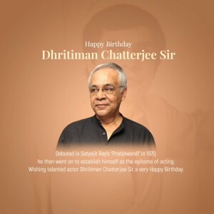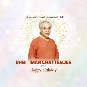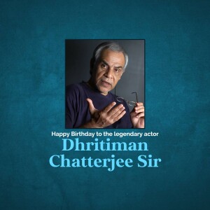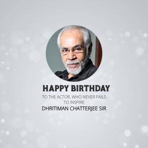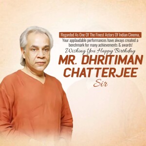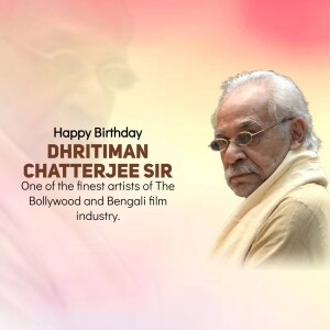 Description: A graphic celebrating the birthday of veteran actor Dhritiman Chatterjee, featuring his portrait and a message recognizing his contribution to Bollywood and Bengali cinema.