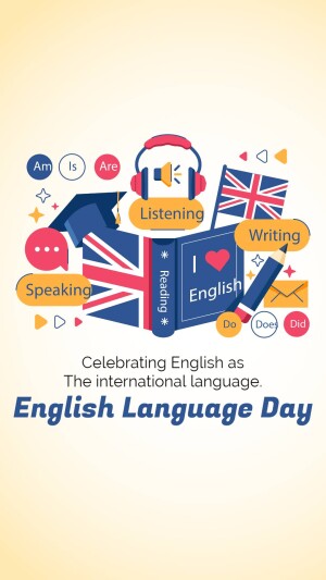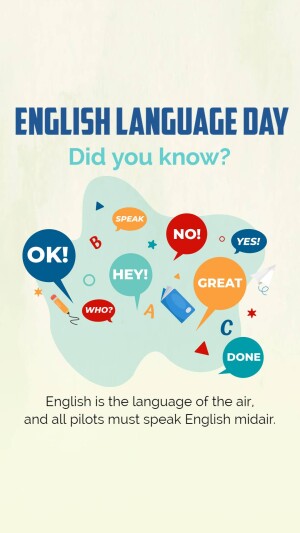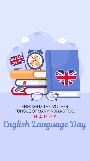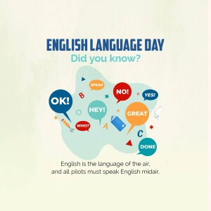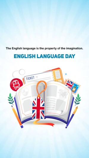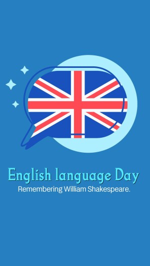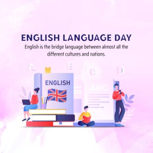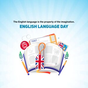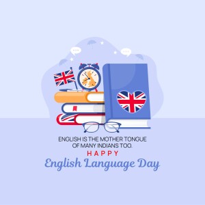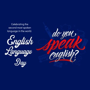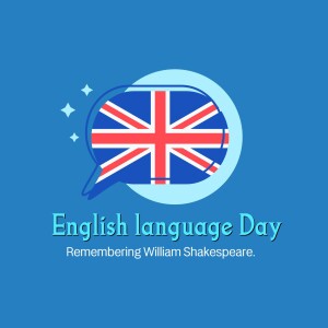 Description: A graphic commemorating English Language Day, featuring a portrait of William Shakespeare surrounded by a word cloud of English words and phrases. The text 'English Language Day' is prominently displayed at the top, and 'Honouring the memory of England's national poet & 'Bard Of Avon' William Shakespeare' is at the bottom.