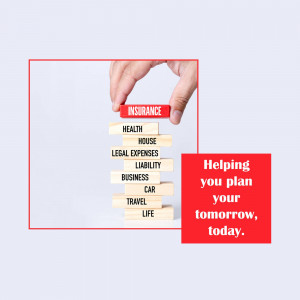 Description: A colorful illustration depicting a family with icons symbolizing various types of insurance coverage, including car, home, and security. The text 'Always be CONFIDENT when you're INSURED.' is prominently displayed.