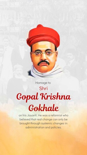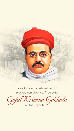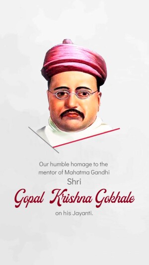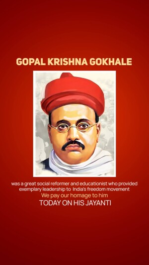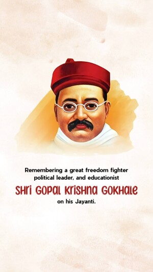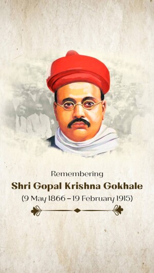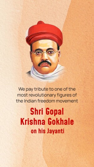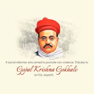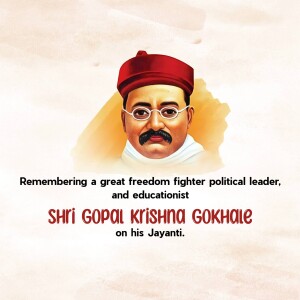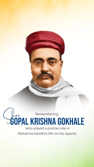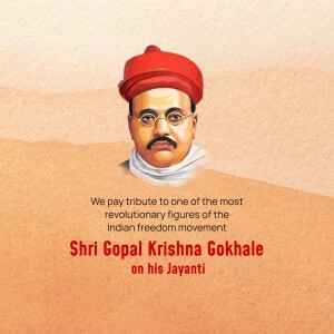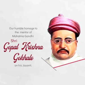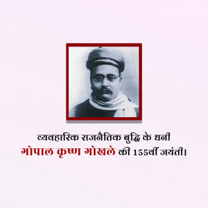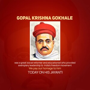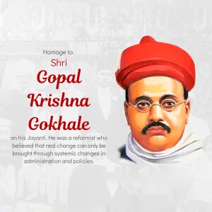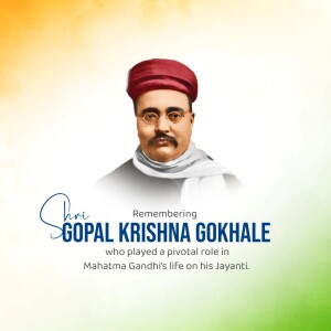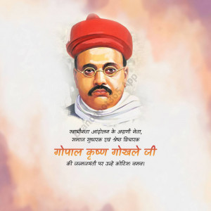 Description: An image commemorating the birth anniversary of Gopal Krishna Gokhale, a prominent leader in India's freedom movement. The image features his portrait against a backdrop of the Indian flag.