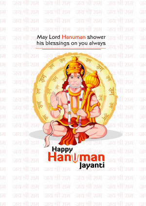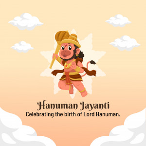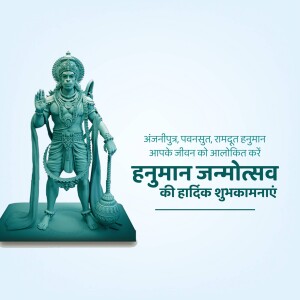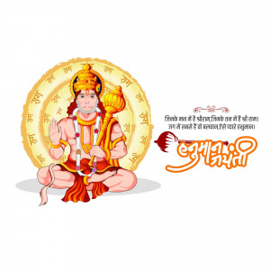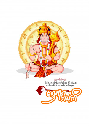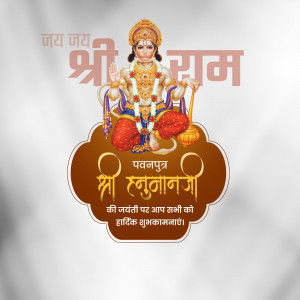 Description: A festive image celebrating Hanuman Jayanti, featuring a depiction of Lord Hanuman with text in Hindi wishing devotees.