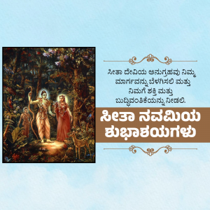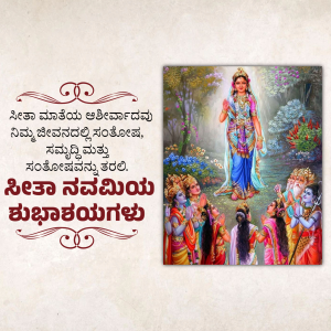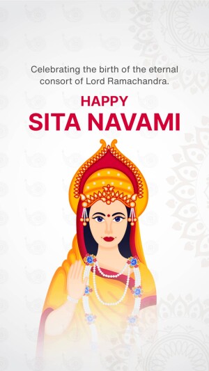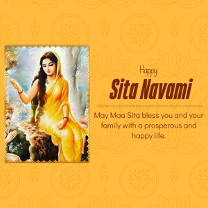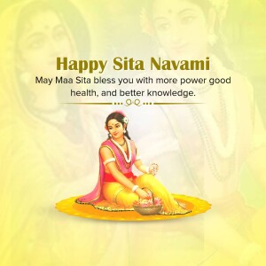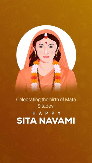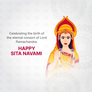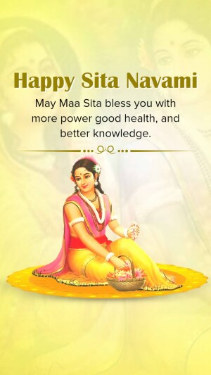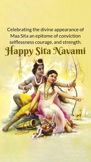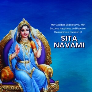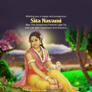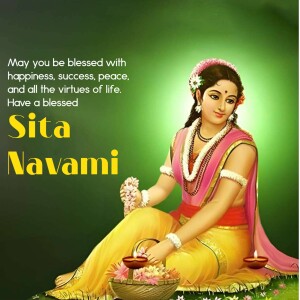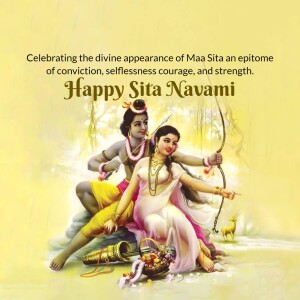 Description: A festive image wishing 'Happy Navami' and celebrating the divine appearance of Maa Sita, highlighting her virtues of conviction, selflessness, courage, and strength.