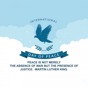 Description: An image promoting the International Day of Living Together in Peace, featuring a globe held by hands of different skin tones, a white dove, and text emphasizing support for coexistence and peace.