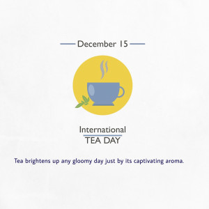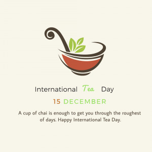 Description: A promotional graphic for International Tea Day featuring a glass of tea and text promoting sustainable tea production and consumption.