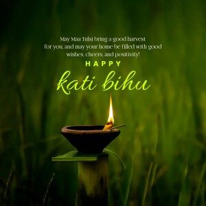 Description: An image depicting a traditional diya lamp lit against a blurred green background, accompanied by Bengali text wishing everyone a happy Kartik Purnima.