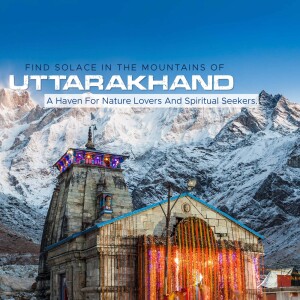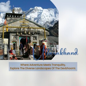 Description: A digitally enhanced image showcasing the iconic Khajuraho temples emerging from a misty landscape, with snow-capped mountains in the distance. Hindi text is overlaid on the image.
