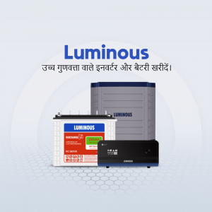 Description: An advertisement for Luminous batteries, highlighting their reliability and long-lasting power. The image features an Invergell battery with a focus on its features.