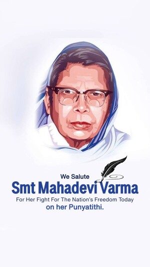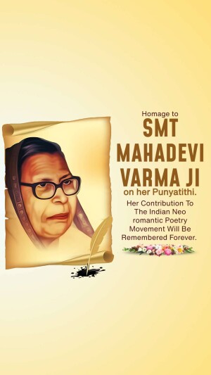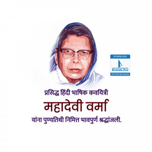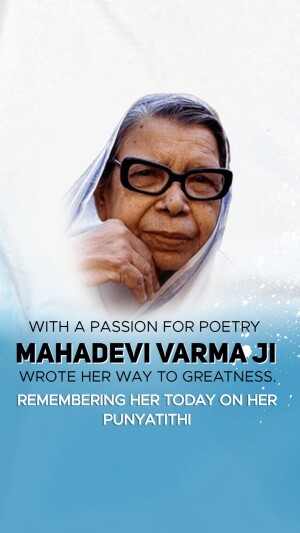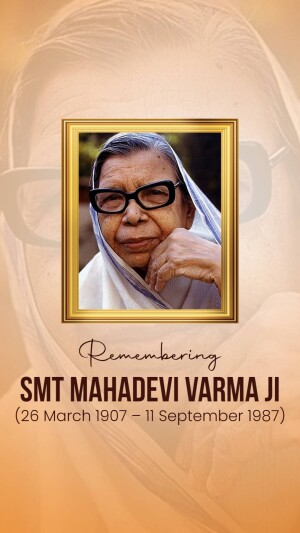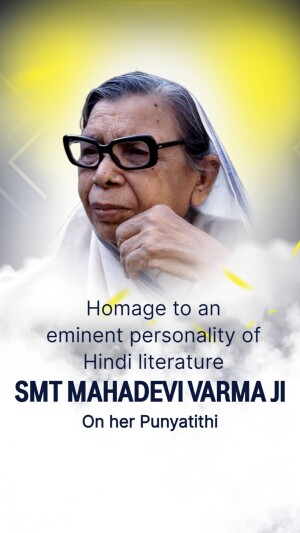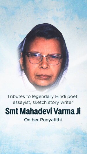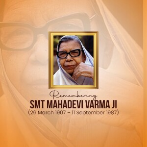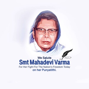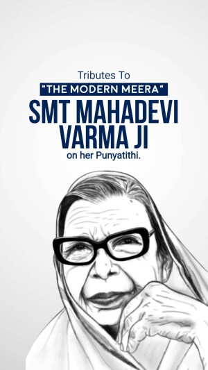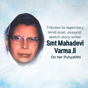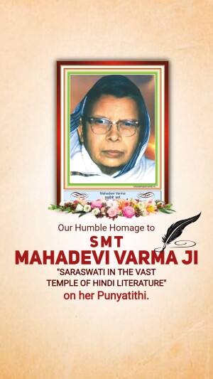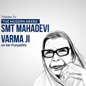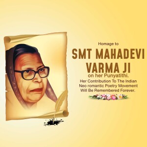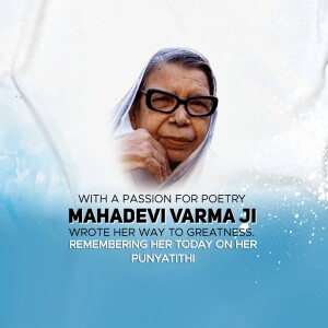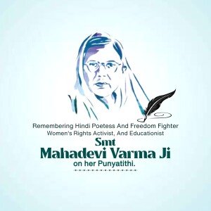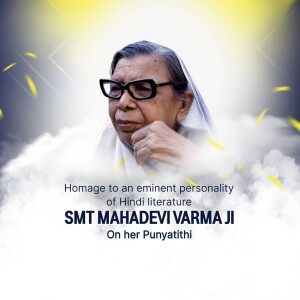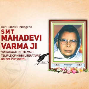 Description: A tribute image featuring Mahadevi Varma, a prominent figure in Hindi literature. The image includes text in Hindi honoring her contribution.