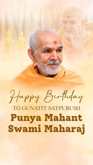 Keywords: Mahant Swami Maharaj, Swaminarayan, Birthday, Spiritual leader, Gujarati, Hinduism, Bochasanwasi Shri Akshar Purushottam Swaminarayan Sanstha