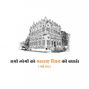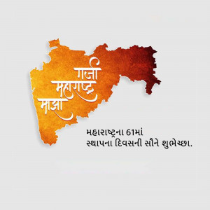 Description: A graphic depicting the state of Maharashtra with silhouettes of people celebrating, accompanied by text in Marathi wishing a happy Maharashtra Day.