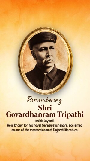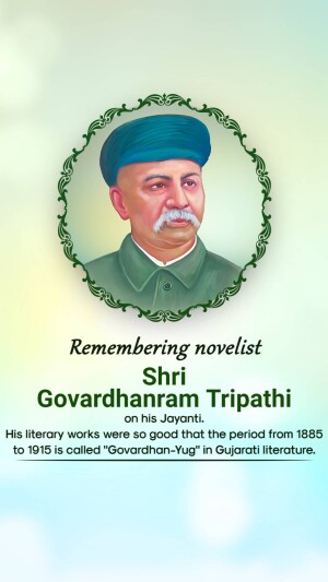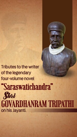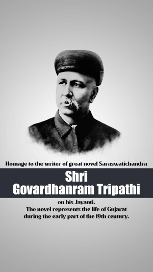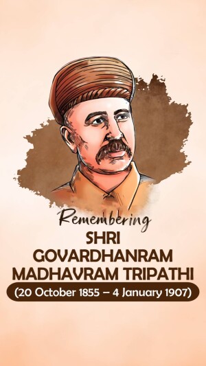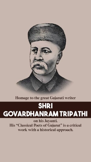 Keywords: Govardhanram Tripathi Jayanti, मराठी, T-shirt, Jersey, tee shirt, Maharshi Govindram Tripathi, Marathi literature, Indian scholar, Portrait, Marathi Culture, Historical figure