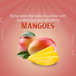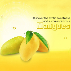 Description: A promotional image showcasing mangoes and their health benefits, including glucose control, disease fighting, weight reduction, and improved absorption.