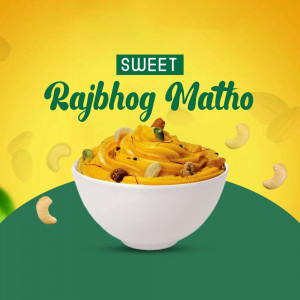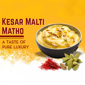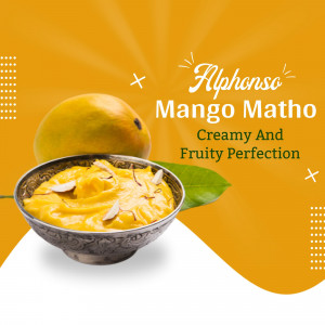 Description: An advertisement for Mavcha, a sweet and refreshing traditional Maharashtrian dessert, perfect for any occasion. The image features a bowl of Mavcha with ingredients like curd, sugar, and fruits.