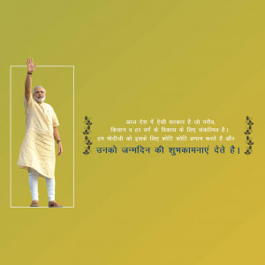 Description: A promotional image featuring Indian Prime Minister Narendra Modi with text in Hindi wishing him a happy birthday.