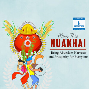 Description: This image showcases a vibrant and artistic representation of the Nuakhai festival, a harvest festival celebrated in Western Odisha, India. It features people dressed in traditional Sambalpuri clothing, along with elements like rice stalks and a depiction of a deity.