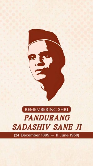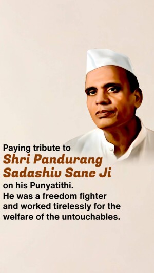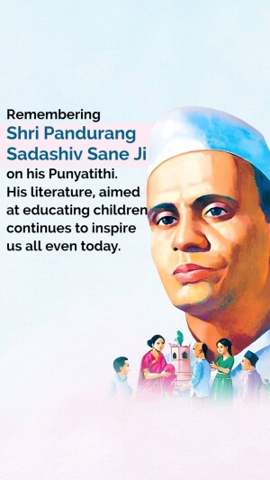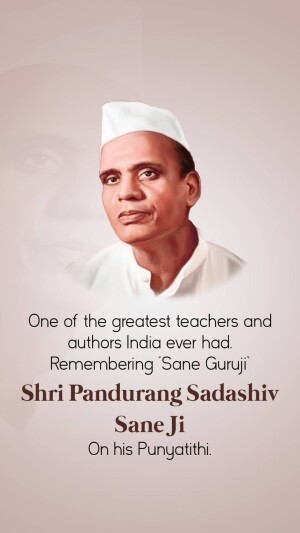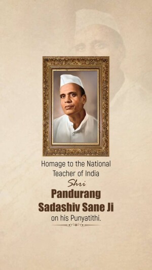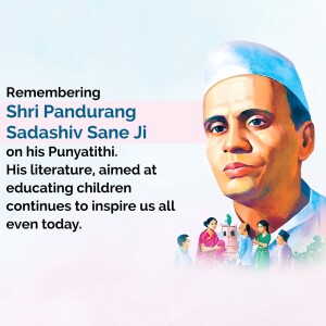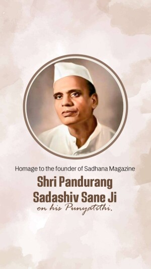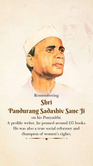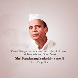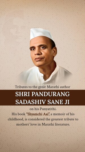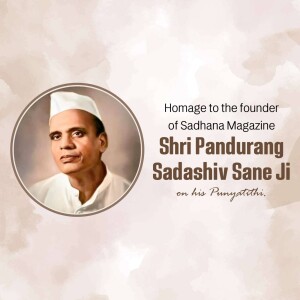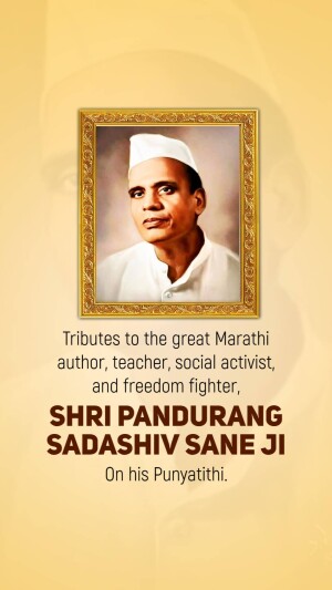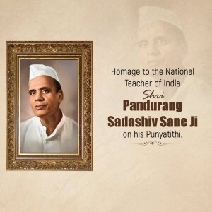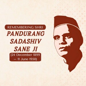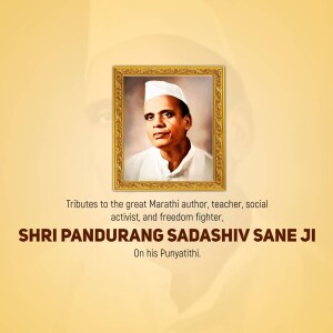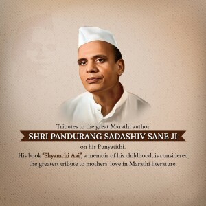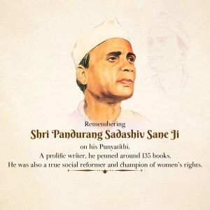 Description: A commemorative image featuring a portrait of Pandurang Sadashiv Sane Ji, a prominent Marathi writer and social reformer. The image includes his name and dates of birth and death.