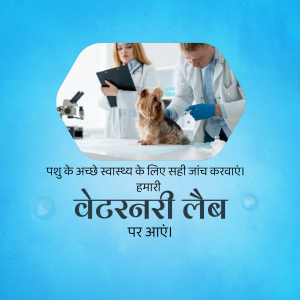 Description: An advertisement for a pet clinic featuring a veterinarian smiling and interacting with a beagle. The image promotes trust and expert care for pets.