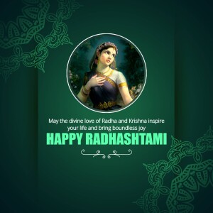 Description: A digital illustration of Goddess Radha, wishing a blessed Radhashtami.