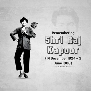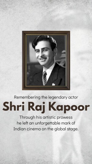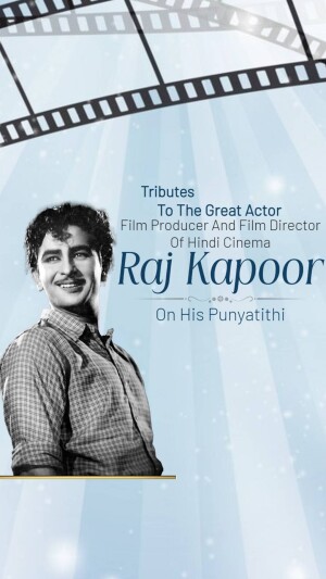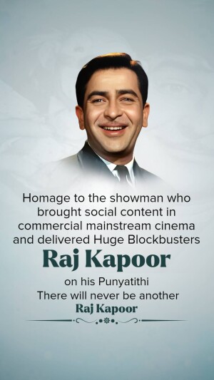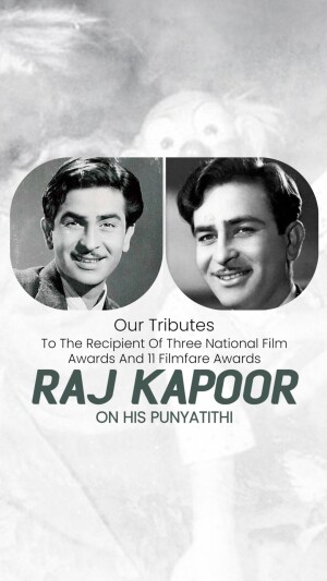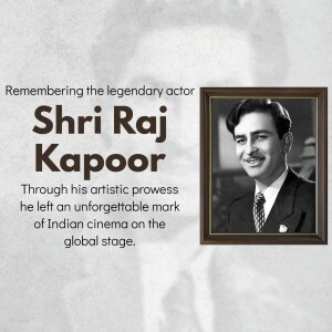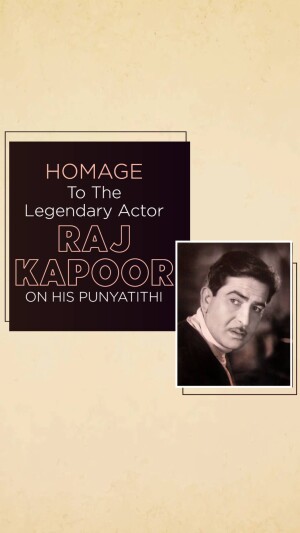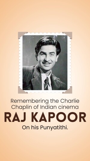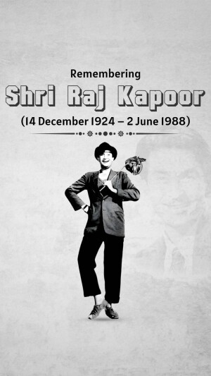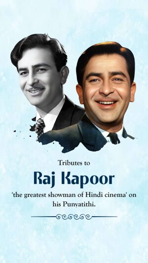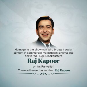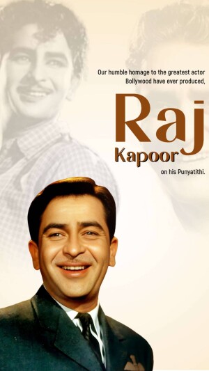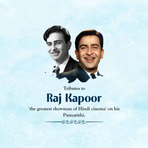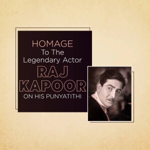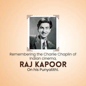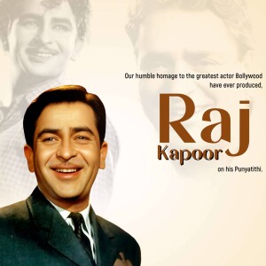 Description: A commemorative image honoring the legendary Indian actor, film director, and producer, Raj Kapoor, on his Punyithi (death anniversary).