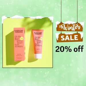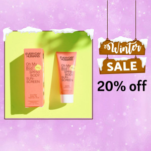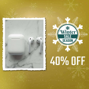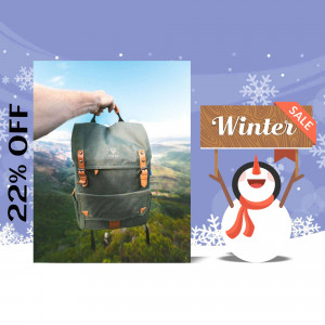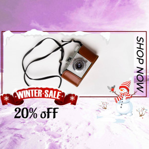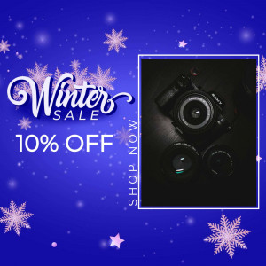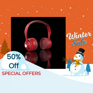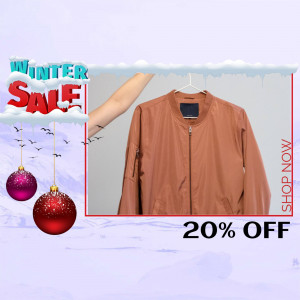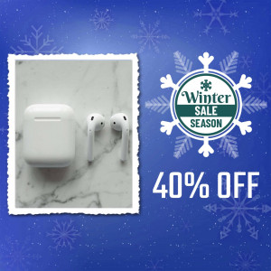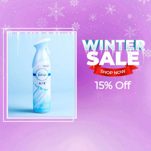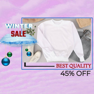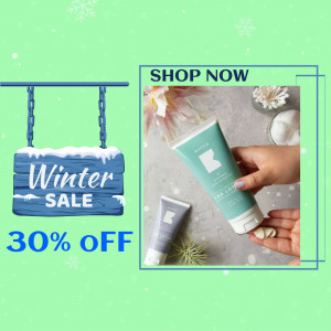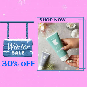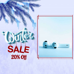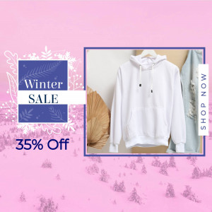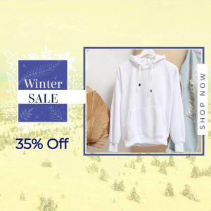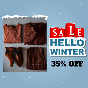 Description: An advertisement featuring a beautiful silver ring with a large, oval-cut blue sapphire gemstone. The ring is displayed on a blue pedestal, and a winter sale promotion with '35% OFF' is prominently featured.