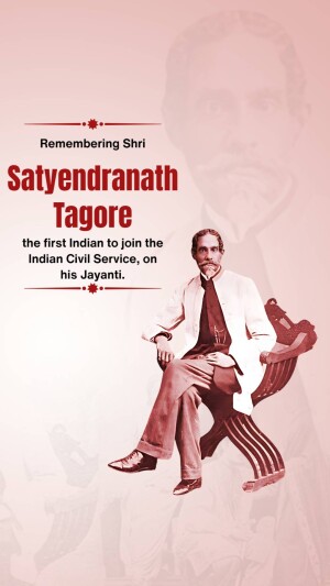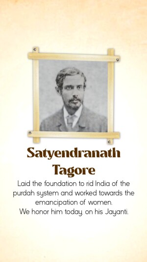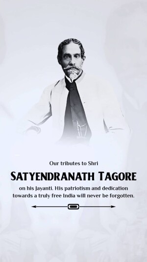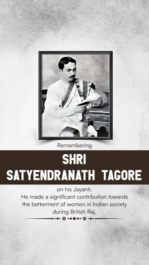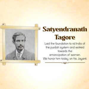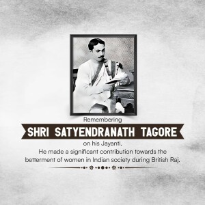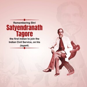 Description: An image commemorating the birth anniversary (Jayanti) of Shri Satyendranath Tagore, featuring a portrait of him and a tribute message.