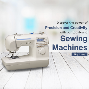 Description: An advertisement promoting reliable sewing machine repair services, featuring a technician working on a machine.