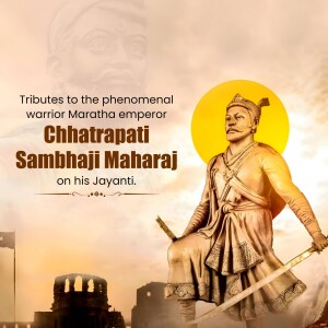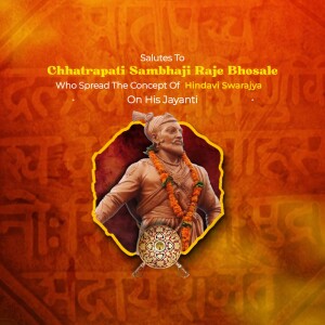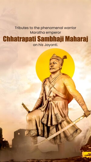 Description: An image commemorating the birth anniversary of Chhatrapati Shivaji Maharaj, featuring his statue against a golden sunburst and text in Marathi honoring him.