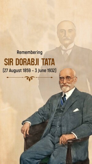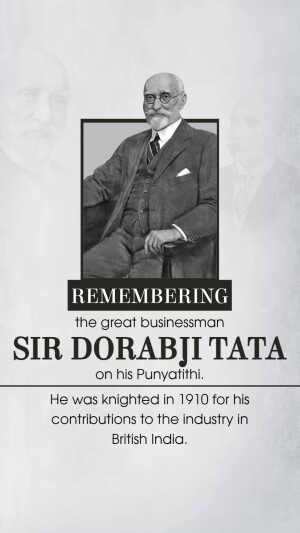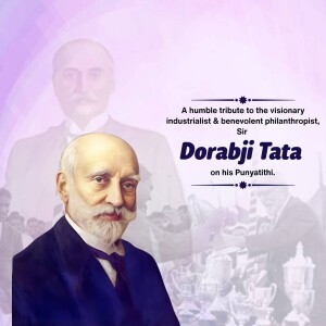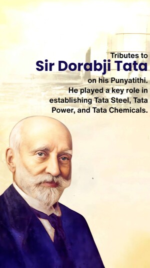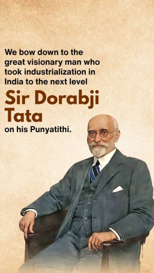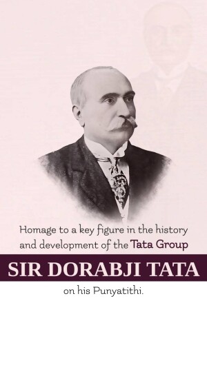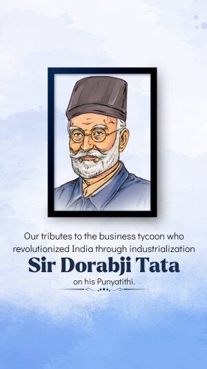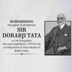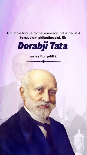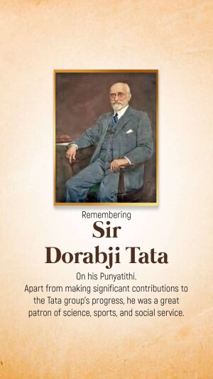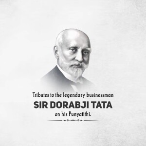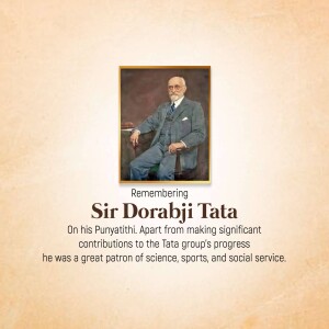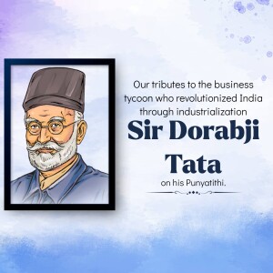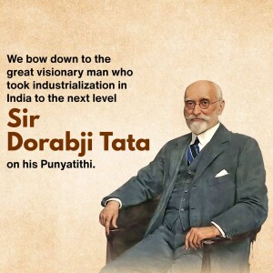 Description: An image honoring Sir Dorabji Tata on his Punyatithi (death anniversary), featuring his portrait and a tribute message.