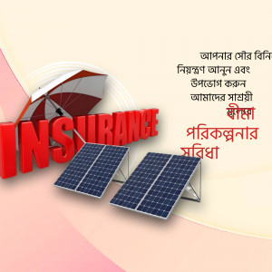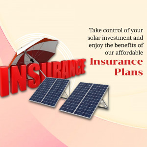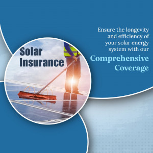 Description: An advertisement for solar panel insurance, showcasing coverage for damage, theft, liability, and more. The image features a hand holding a tablet with a house and solar panels displayed on the screen.