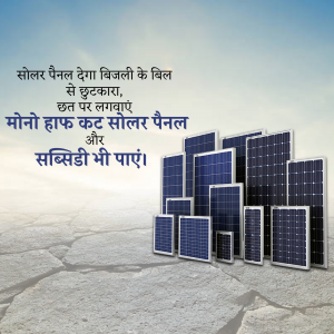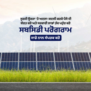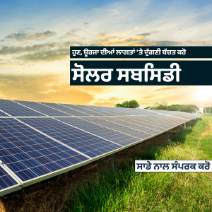 Description: An advertisement featuring solar panels, likely targeting residents of Punjab, India, with text promoting solar energy benefits.