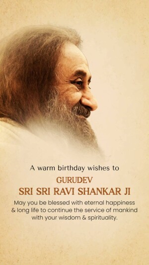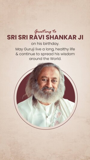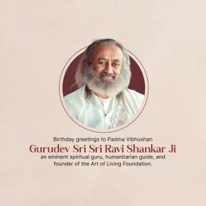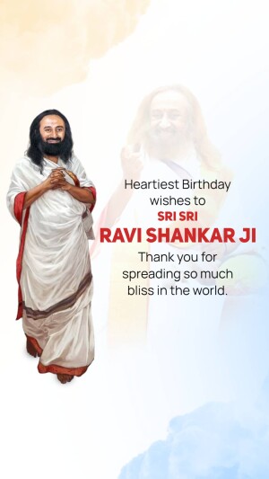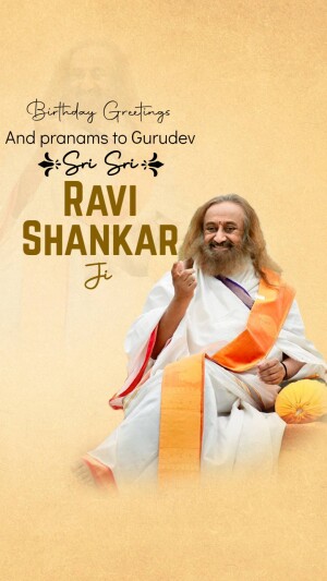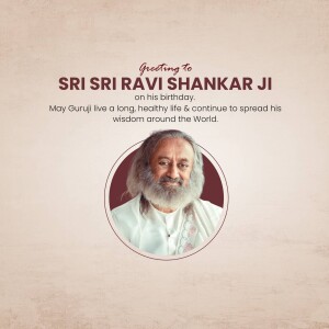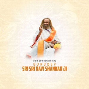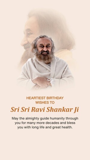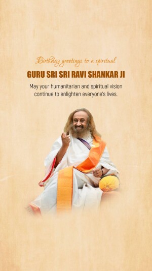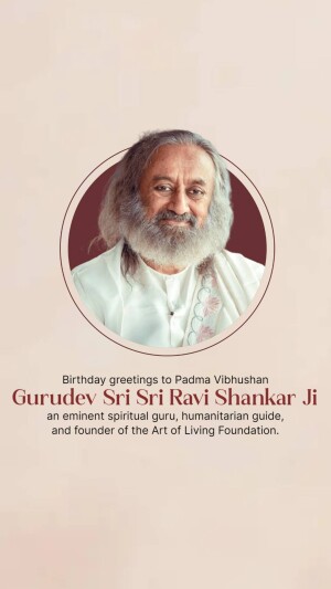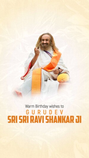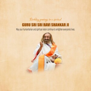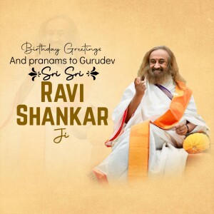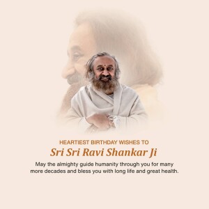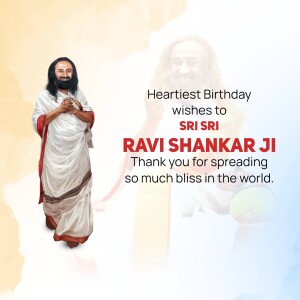 Description: A digital image featuring Sri Sri Ravishankar with text wishing him a happy birthday in Hindi. The background is a gradient of purple and pink.