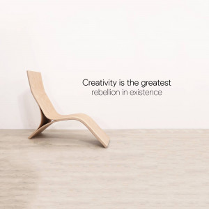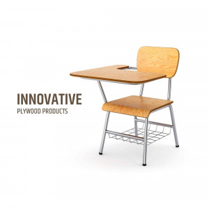 Description: An advertisement featuring a modern wooden chair with a comfortable white cushion, highlighting its durability and high-quality materials.