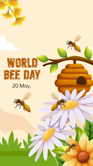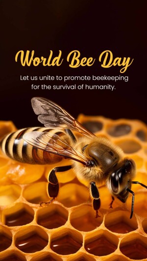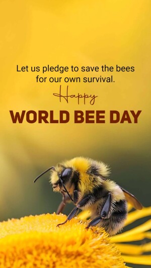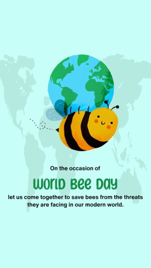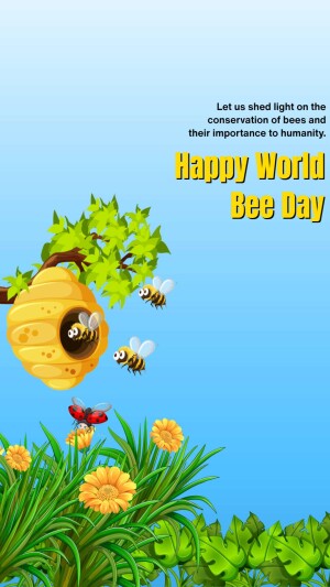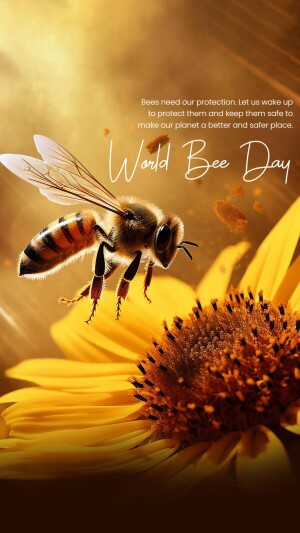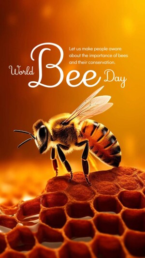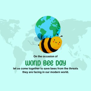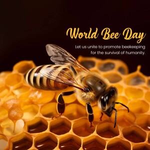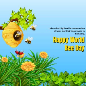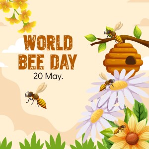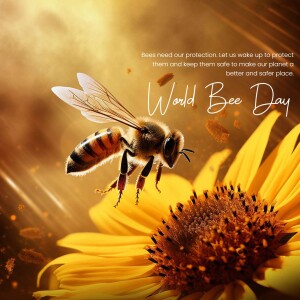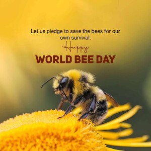 Description: An image featuring a bee on a vibrant pink flower, accompanied by text promoting awareness for bee conservation and celebrating World Bee Day.