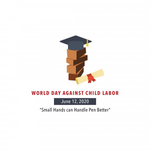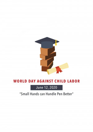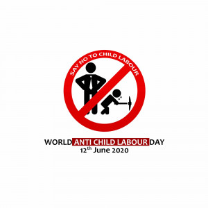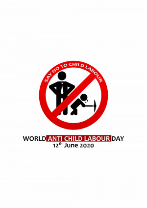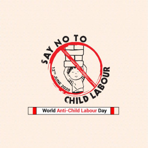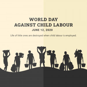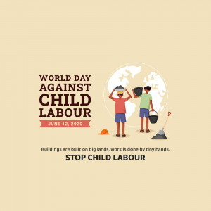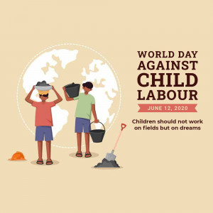 Description: An image promoting World Day Against Child Labour, featuring a child appearing to juggle a globe, symbolizing the right to childhood and freedom from work.