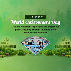 Description: An image celebrating World Environment Day, featuring a prominent pink diamond against a backdrop of Earth and a lion, symbolizing the preciousness of our planet and wildlife.